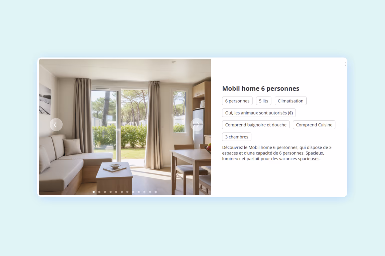 De l'emplacement nu au mobile-home, notre moteur s’adapte à tous les types d’hébergements et à tous les parcours clients. Vous augmentez vos ventes sans augmenter vos équipes.