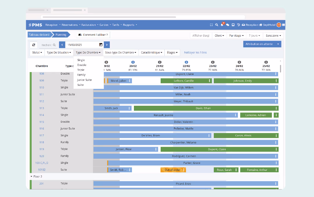 Le PMS Ulyses Suite réunit l’ensemble des métiers de l’hôtel au sein d’un même environnement, facilitant la collaboration entre la réception, les réservations, le housekeeping, la maintenance, la comptabilité et les équipes commerciales. Grâce à des processus fluides, des mises à jour en temps réel et une interface accessible depuis tout appareil, les équipes gagnent en efficacité, en autonomie et en confort d’utilisation.